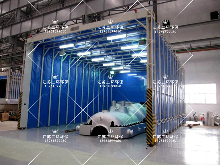 7、對于較大的打磨拋光工件,要考慮到行車叉車的搬運方便,因此可以搭建移動式的伸縮帆布房子。打磨拋光時展開,吊裝時收縮起來。