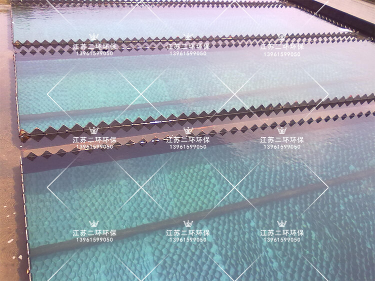 5、高效凈化處理:斜板沉淀器設(shè)置混凝反應(yīng)區(qū)、主流區(qū)、過(guò)渡區(qū)、斜板區(qū)、清水區(qū)等 5 個(gè)區(qū):混凝反應(yīng)區(qū)的主要作用是通過(guò) PAC、PAM 的作用將廢水中細(xì)小的難以沉降的物質(zhì)捕集,使之成為較易沉降的礬花。主流區(qū)位于斜板沉淀池底部的流動(dòng)區(qū),它的主要作用是傳輸待分離的混合液進(jìn)入斜板區(qū),沉淀后的污泥又從此處進(jìn)入斜板沉淀池污泥斗。過(guò)渡區(qū)的作用是消能和調(diào)整流態(tài),防止污泥上翻,保證固液分離效果;同時(shí),它還具有均勻進(jìn)水和作為污泥回流通道等功能,起著雙向傳輸?shù)淖饔?。斜板區(qū)是泥水分離的實(shí)際區(qū)域,在這里,污泥絮凝體形成并在重力作用下沉降到斜板上,澄清后的污水進(jìn)入清水區(qū)。清水區(qū)能夠分隔沉淀工作區(qū)與出水堰,使斜板區(qū)的沉降過(guò)程不受出水水流影響;鋸齒形溢流堰比普通水平堰更易加工也更易保證出水均勻。
