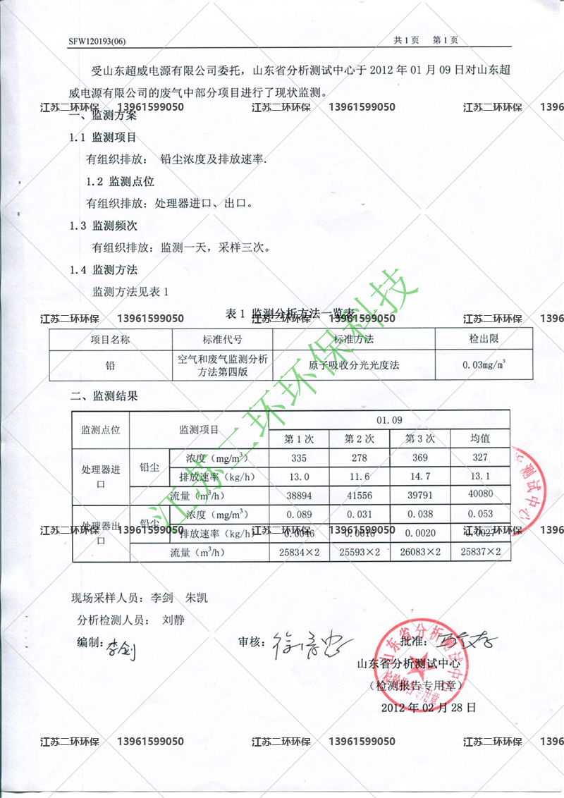 6、排放濃度≦0.1毫克/立方米型:江蘇永達電源有限公司(股票代碼:超威動力HK00951)出廠前檢測(下圖)